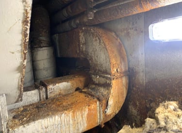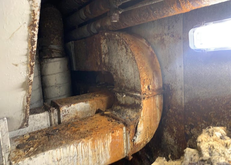 A mid-size passenger ferry reported reduced cooling capacity, high humidity in guest areas, and visible corrosion inside several AHU sections. Our task was to carry out a complete engineering assessment and execute structural, mechanical, and insulation repairs to restore the Air Handling Unit to full operational performance.